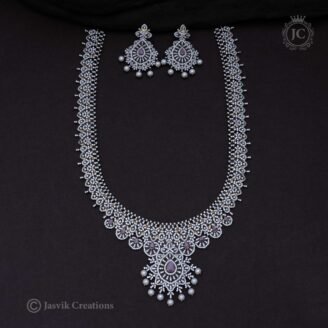 0 out of 5₹4,499Original price was: ₹4,499.₹2,999Current price is: ₹2,999.A Premium Heavy Nakshi Lakshmi Haram is a high-end statement piece from South Indian temple jewelry collections, defined by its intricate “Nakshi” (hand-carved) craftsmanship and divine motifs. ✨ Design and Artistry Nakshi Craftsmanship: This style features deep, three-dimensional carvings of deities, most commonly Goddess Lakshmi, which are hand-sculpted to give a realistic and “heavy” appearance….