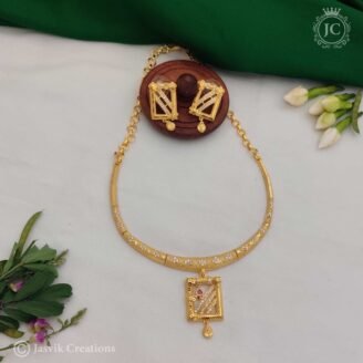 0 out of 5₹3,999Original price was: ₹3,999.₹3,250Current price is: ₹3,250.The “Double Forming Real Gold Haram” is a long, traditional Indian necklace that expertly replicates the look and feel of solid gold, using a specialized plating process. The name “Double Forming” highlights a key design feature: the necklace chain is made of two distinct, parallel strands. This design choice adds to the visual richness and…