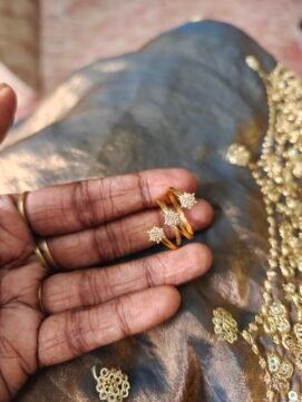 0 out of 5₹599Original price was: ₹599.₹399Current price is: ₹399.These exquisite Micro Gold Plated American Diamond Bangles will add a whole new level of sophistication to your traditional outfit. Each bangle is skillfully plated with one gram of tiny gold after being painstakingly handmade from premium brass, guaranteeing a gorgeous finish and longevity. These bangles, which are adorned with brilliant American diamond stones, radiate…