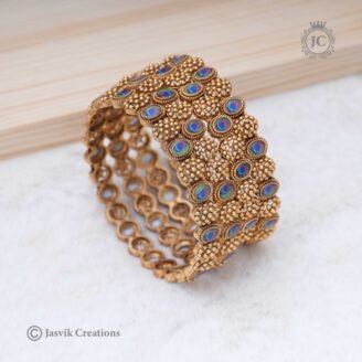 View this post on Instagram A post shared by Jasvik Creations (@jasvik_creation) Embrace the divine allure of the Peacock Bridal Lakshmi Kada Bangle, a mesmerizing symbol of elegance and tradition. Crafted with meticulous care using premium brass material, this exquisite bangle is adorned with dazzling ad stones and plated with a lustrous matte gold finish,…