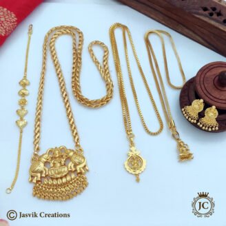 This is a Heavy Haram with a traditional Impon finish, which is a type of gold-plated alloy known for its durability and rich, golden appearance. The “Heavy” in the name refers to the substantial feel and elaborate design of this long necklace. The necklace features a classic and durable snake chain, which provides a solid…