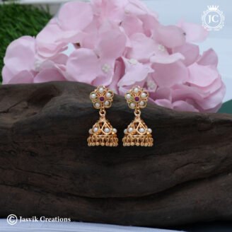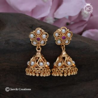 A Traditional Detachable Pearl Jhumka is a versatile South Indian jewelry piece designed for multi-functional use, offering two distinct looks in one set. Key Design Features Detachable 2-in-1 Design: The earring consists of two parts—a decorative top stud and a dangling bell-shaped jhumka—that can be separated. Modular Use: The upper portion can be worn as…