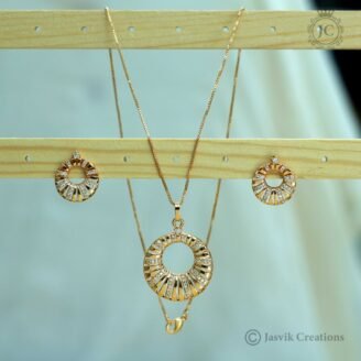 A symphony of sparkle and sophistication, this rose gold bracelet features a harmonious blend of geometric links and a circular motif encrusted with shimmering stones. The dual design—half classic chain, half stone-studded elegance—makes it a standout piece for both modern and traditional ensembles.