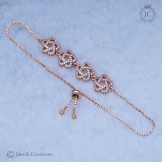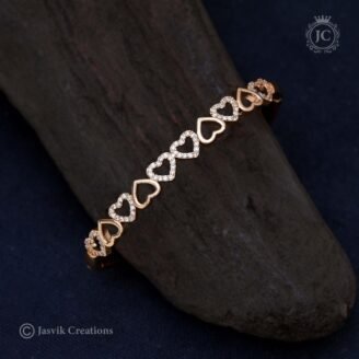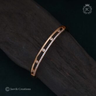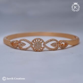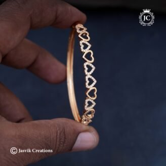 The second image shows a sleek bracelet with a distinct rosy hue. The center and other sections of the bracelet are encrusted with small, sparkling stones, likely cubic zirconia (CZ) or American diamonds (AD). What is Rose Gold? Rose gold is an alloy, meaning it’s a mixture of pure gold and other metals, primarily copper….