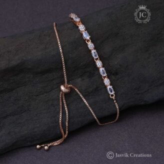 Delicate yet dazzling, this rose gold bracelet is a celebration of refined luxury and graceful design—perfect for those who appreciate understated brilliance. Design Highlights: Alternating oval and round-cut clear gemstones create a rhythmic sparkle across the wrist. Set in warm rose gold-toned metal, each stone is held by precision prongs for maximum light reflection. Features…