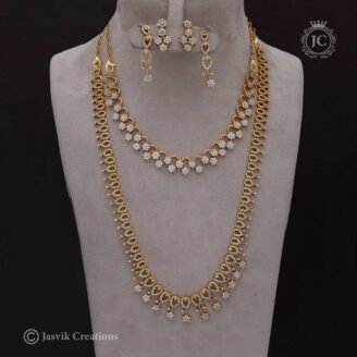 0 out of 5₹999Original price was: ₹999.₹699Current price is: ₹699.This is an exquisite necklace designed to mimic the luxurious appearance of real gold jewelry. The necklace is expertly crafted to “form” a beautiful and structured line on the neckline, making it both a graceful and modern piece. Real Gold Look: The necklace has a high-polish, radiant gold finish that gives it the rich and…