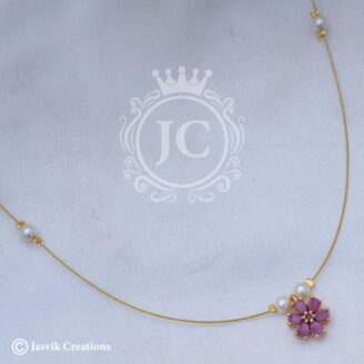 0 out of 5₹250Original price was: ₹250.₹170Current price is: ₹170.Gracefully understated, this delicate necklace features a soft pink floral pendant that seems to float along a pearl-kissed gold chain. Its minimalist design and invisible setting evoke effortless charm—ideal for intimate occasions or everyday elegance.