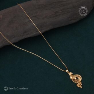 This is a beautiful and elegant Simple Swan Haram, a long necklace that features a continuous, repetitive motif. The term “Haram” refers to its long length, while the “Swan” motif gives the piece a graceful and timeless appeal. The necklace’s chain is composed of a single, flowing strand of interconnected, stylized swan or peacock motifs….