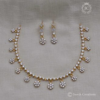 0 out of 5₹1,599Original price was: ₹1,599.₹799Current price is: ₹799.This style of jewelry is characterized by its bright, diamond-like appearance and is often referred to as “AD” (American Diamond) or “CZ” (Cubic Zirconia) with a special gold-like finish. The term “GJ Polish” refers to a superior plating technology that provides a durable and brilliant finish, often mimicking the look of real gold and diamonds….