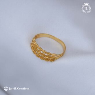 0 out of 5₹180Original price was: ₹180.₹99Current price is: ₹99.This is a stylish Microplated Finger Ring featuring a bold, three-layer band. Each of the three parallel bands is intricately decorated with a continuous line of small, textured leaf-like or marquise-shaped gold elements, giving the ring a rich, dimensional look. The multiple-layer design makes it a noticeable and modern statement piece.