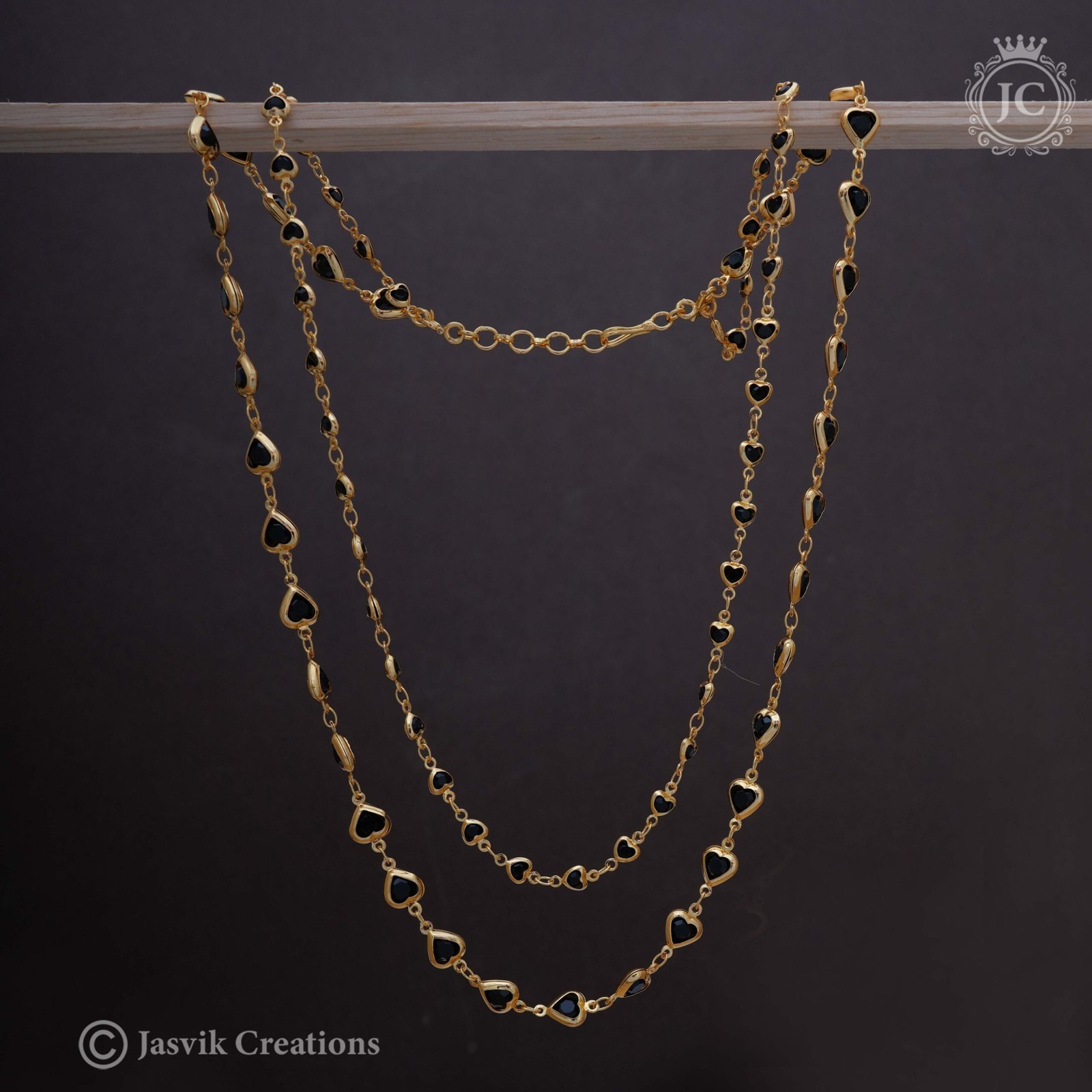 2-Line-Black-Heart-Crystal-Chain- JCCH288