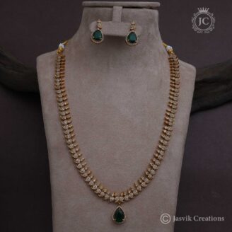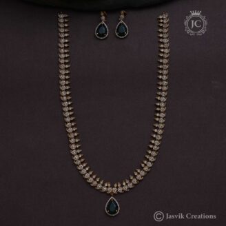 Style: As a “haram,” this is a long necklace, designed to be a grand, standalone piece. It is perfect for complementing traditional attire like sarees and lehengas, especially during weddings, festivals, and other celebratory events. The set often includes matching earrings that echo the design of the main pendant, completing the opulent look.