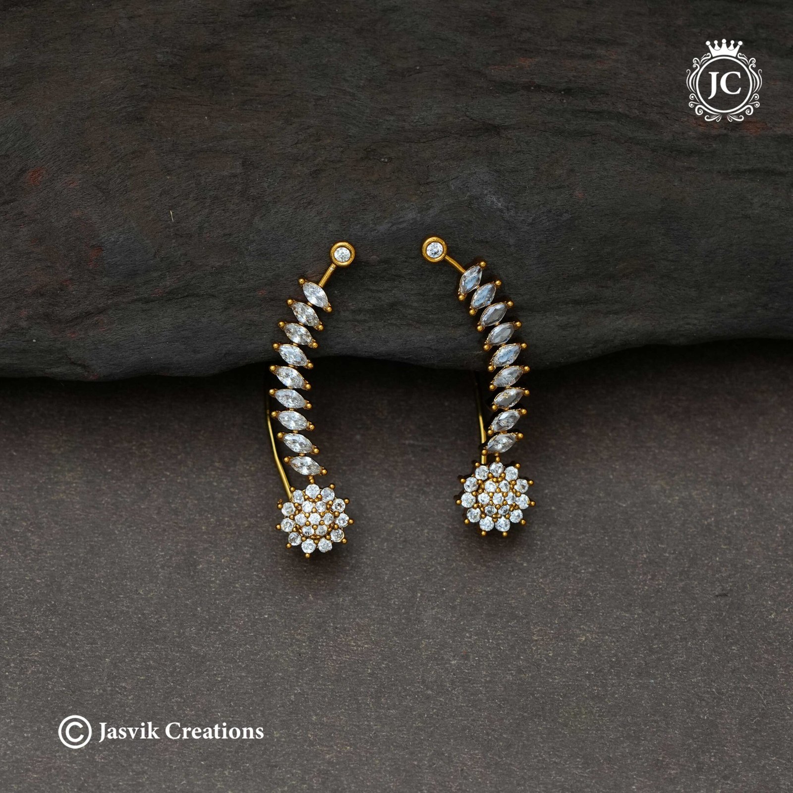 Aesthetic: The design offers a beautiful contrast between the traditional floral stud and the dramatic, modern sweep of the ear cuff, making it a perfect statement piece for parties, receptions, or festive occasions.