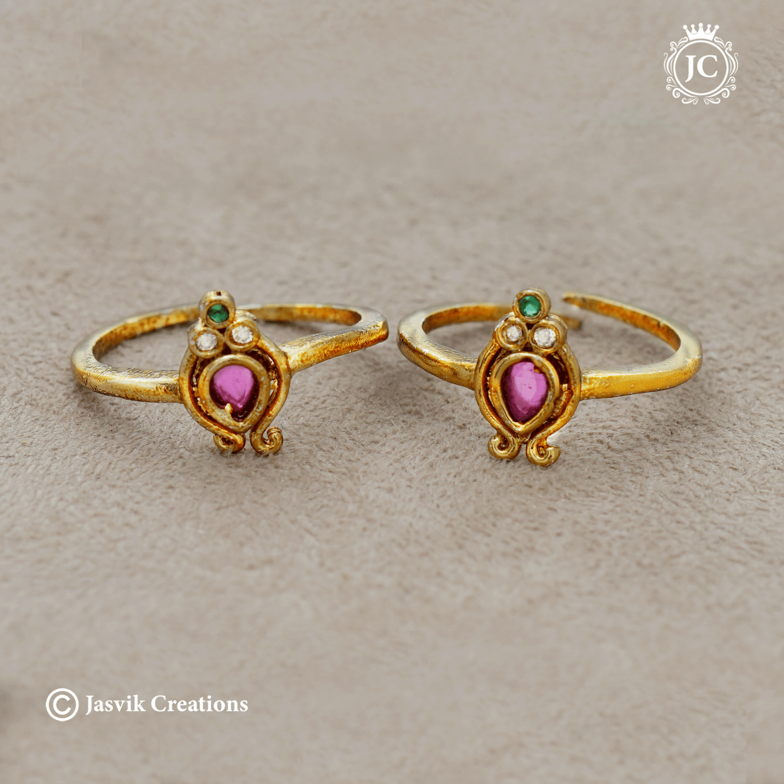 Overall Look: A beautiful piece of Temple Jewellery style that is both traditional and ornate, adding a vibrant, classic pop of color to the feet.