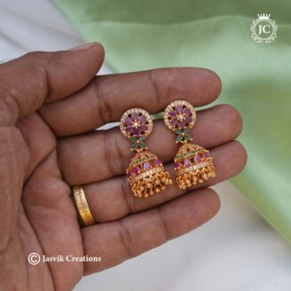Danglers: Often finished with faceted emerald-green or ruby-red beads and delicate clusters of white pearls to add movement and elegance.