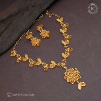 Sasitrends Lakshmi Coin Necklace Set: This micro gold-plated set features a large central Lakshmi coin surrounded by smaller ones, offering a rich, temple-jewelry look with matching earrings.