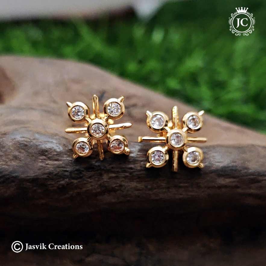 Design: Features a contemporary yet classic floral or starburst pattern, with clear cubic zirconia (CZ) stones set to resemble brilliant-cut diamonds. The settings are often referred to as a “diamond-cut” or “diamond-look” finish.