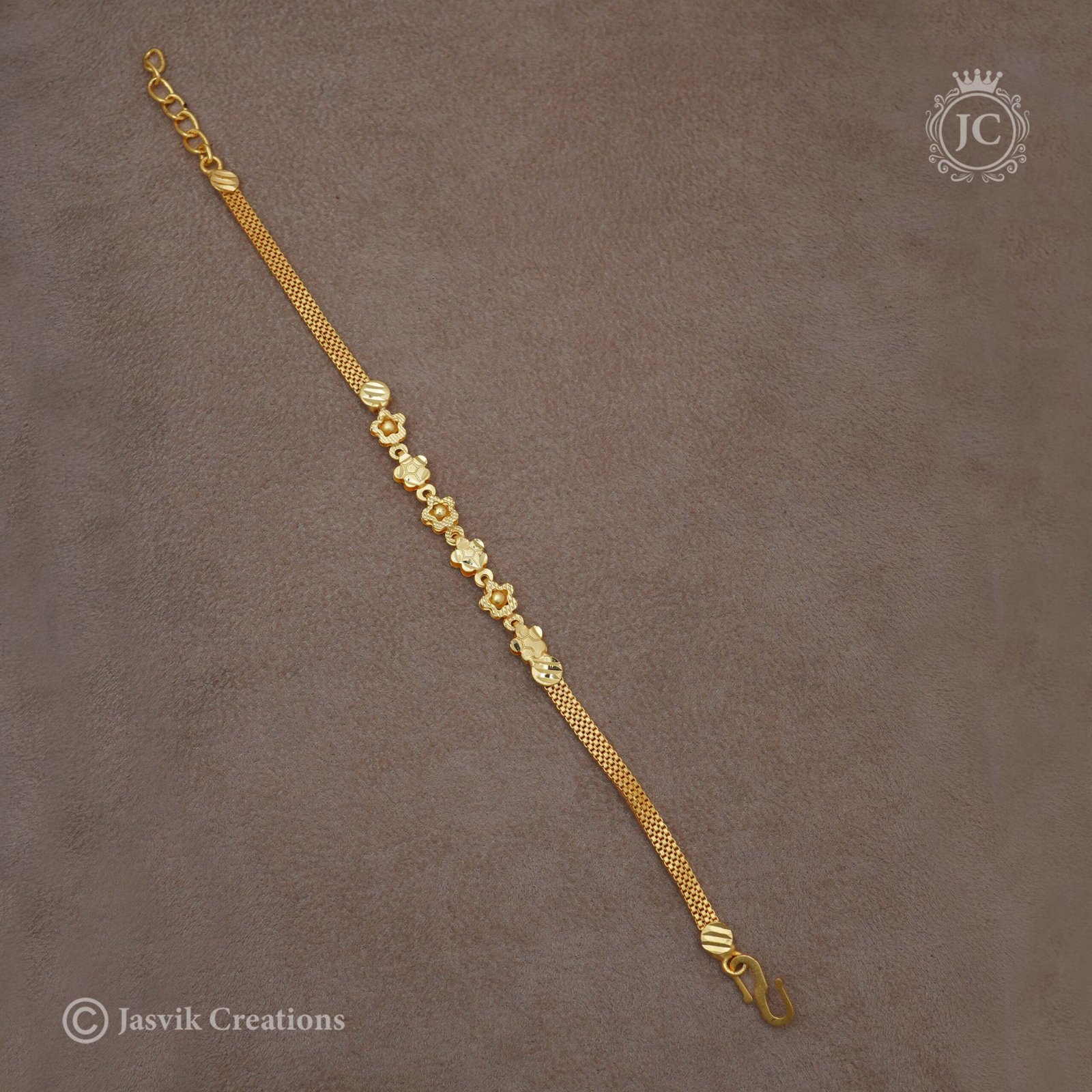 Design: This elegant bracelet showcases a beautiful and intricate floral design, possibly featuring multiple small flowers or charms spaced along a delicate gold chain.