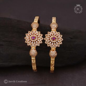 his piece is a set of bangles designed to replicate the classic style of gold bangles from the famous Indian jewelry brand GRT (G.R. Thanga Maligai). The bangles are a part of the “Jasvik Creations” line and are known for their high-quality finish, which gives them the appearance of genuine gold.