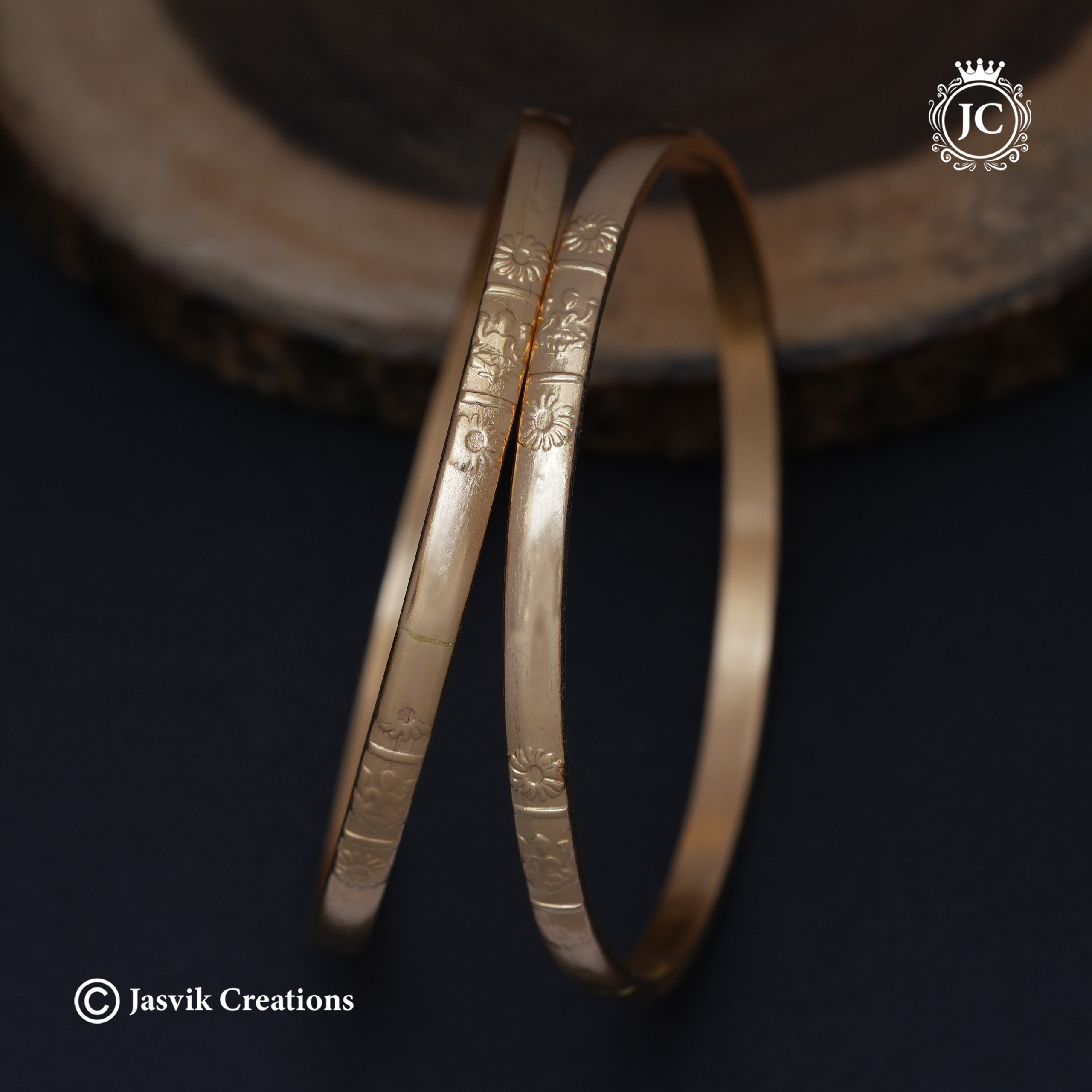 Design: The bangle features intricately embossed or sculpted motifs of Lord Lakshmi Devi (Goddess of wealth and prosperity) repeated at regular intervals along its circumference.