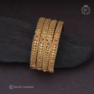 Plain Design: The bangle’s core design is plain, meaning it does not feature any stone settings or elaborate motifs. This makes it a versatile piece for daily wear or to be stacked with other bangles.