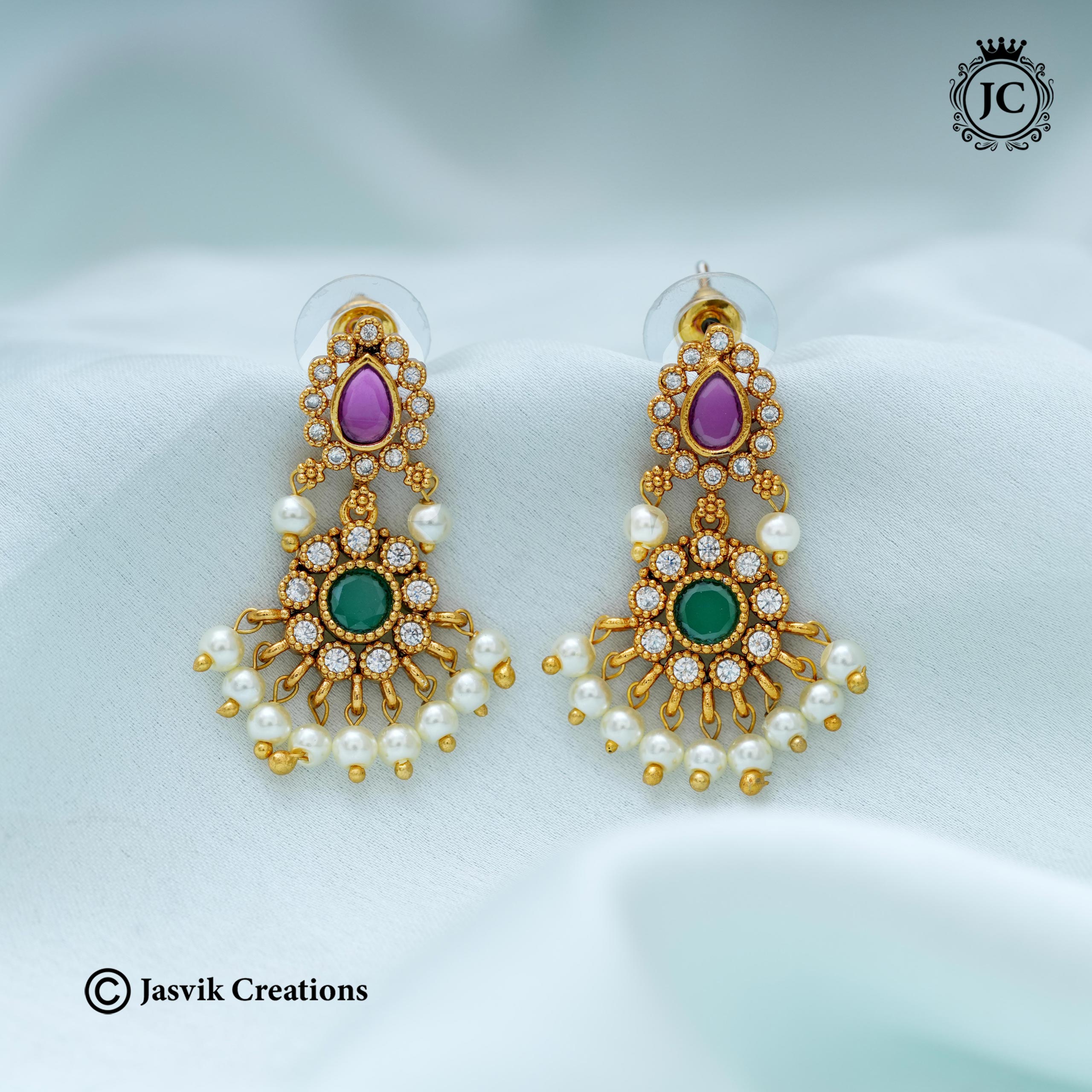 his is a pair of intricate, traditional Indian-style drop earrings featuring a matte gold-tone finish often referred to as ‘Antique’ or ‘Matte Finish’ jewelry.