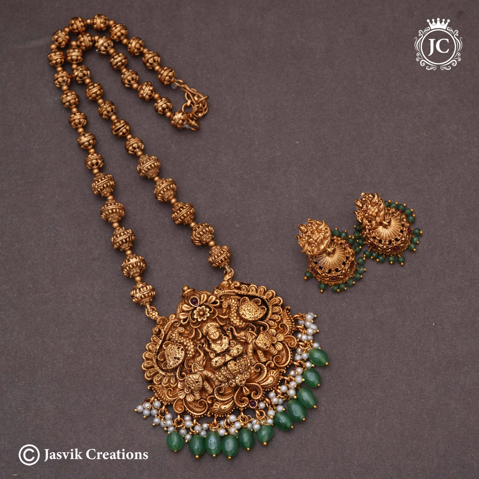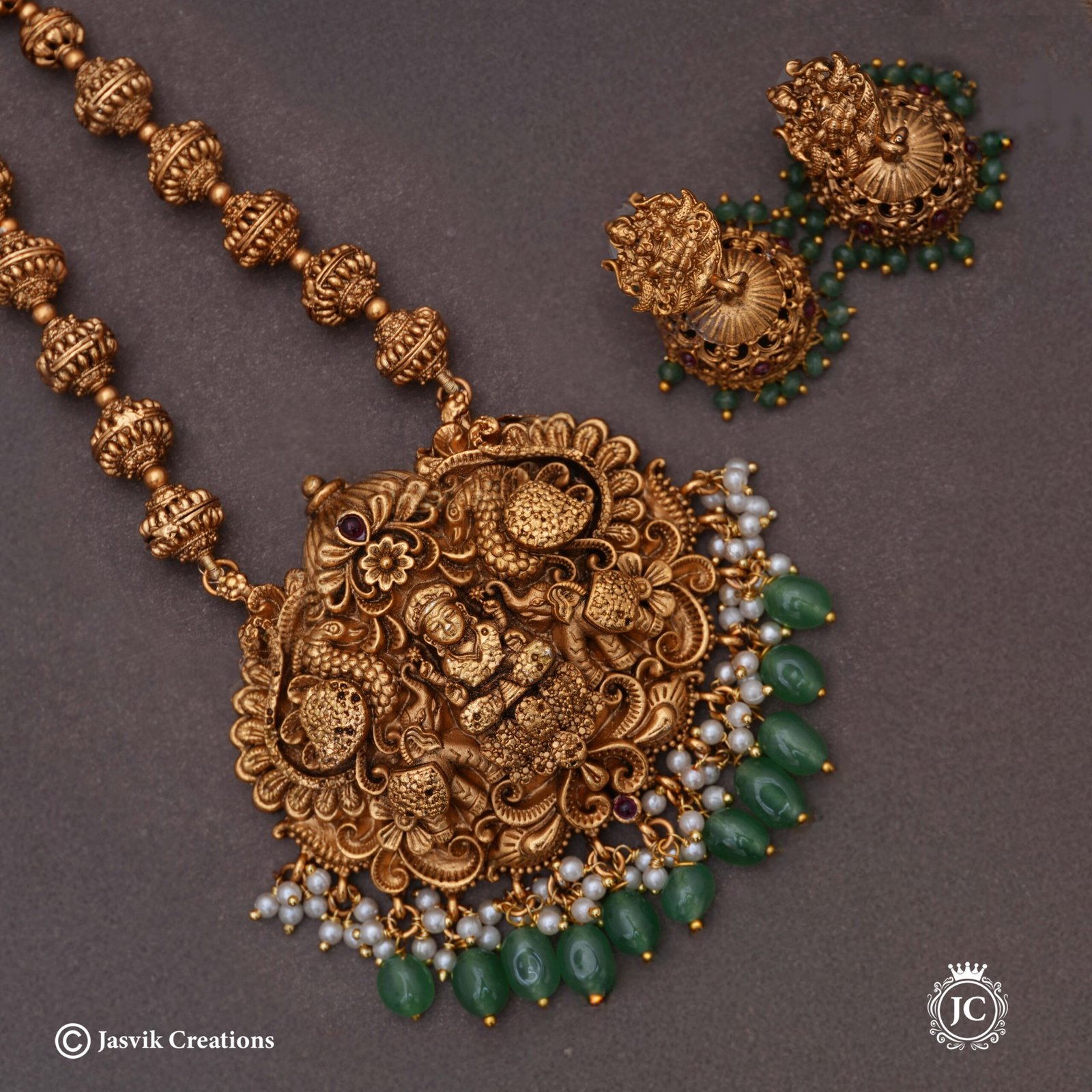 Matte-Finish-Lakshmi-Chetti Nadu-Mid Haram ( Green Hangings ) – JCHM105
