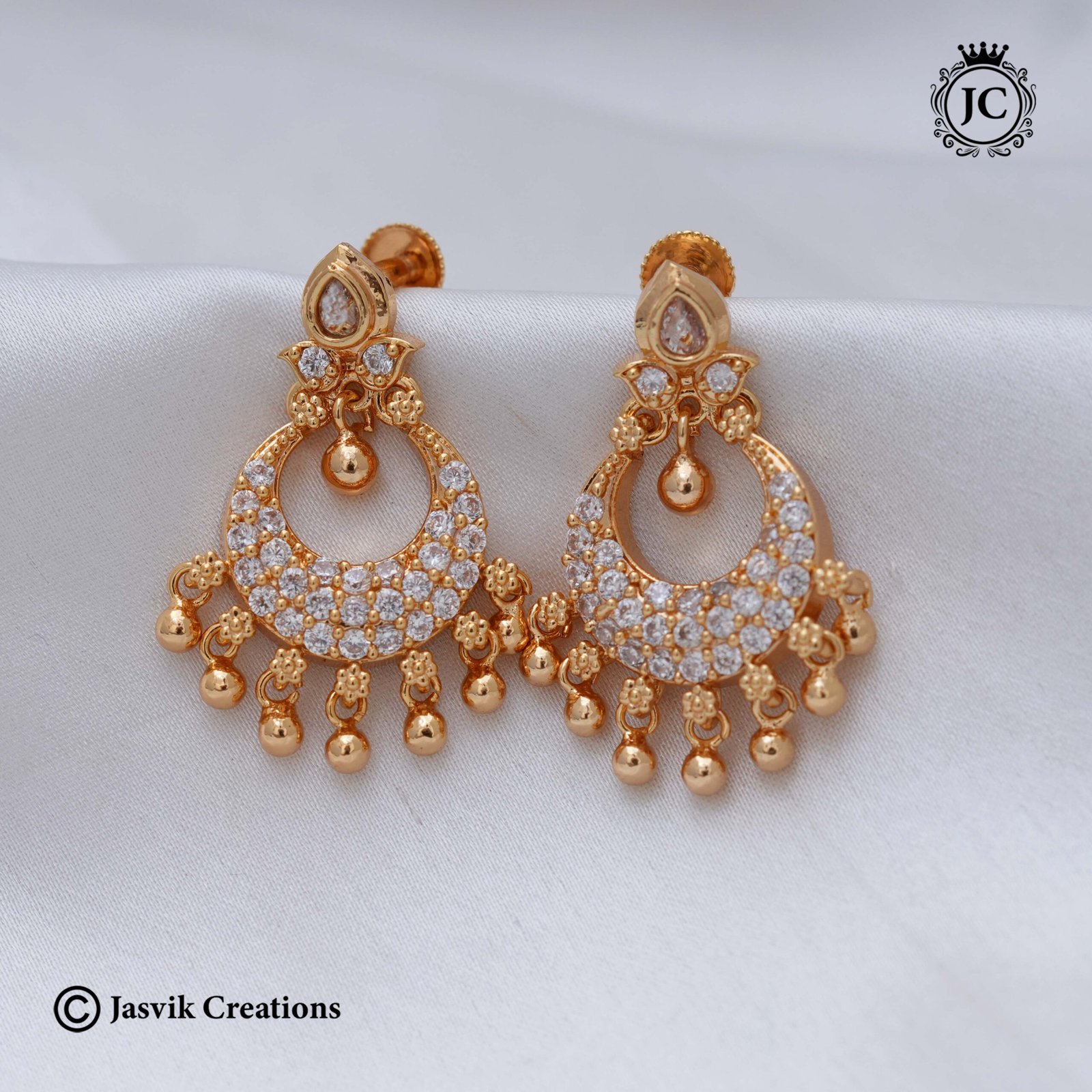 Style: Chandbali Stud Earrings. They feature a traditional crescent (half-moon) shape that is fixed to the ear with a secure stud post.