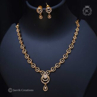 Design: This is a choker-style necklace and earring set with a repeating floral motif. It has a beautiful rose-gold or light gold-toned microplated finish.