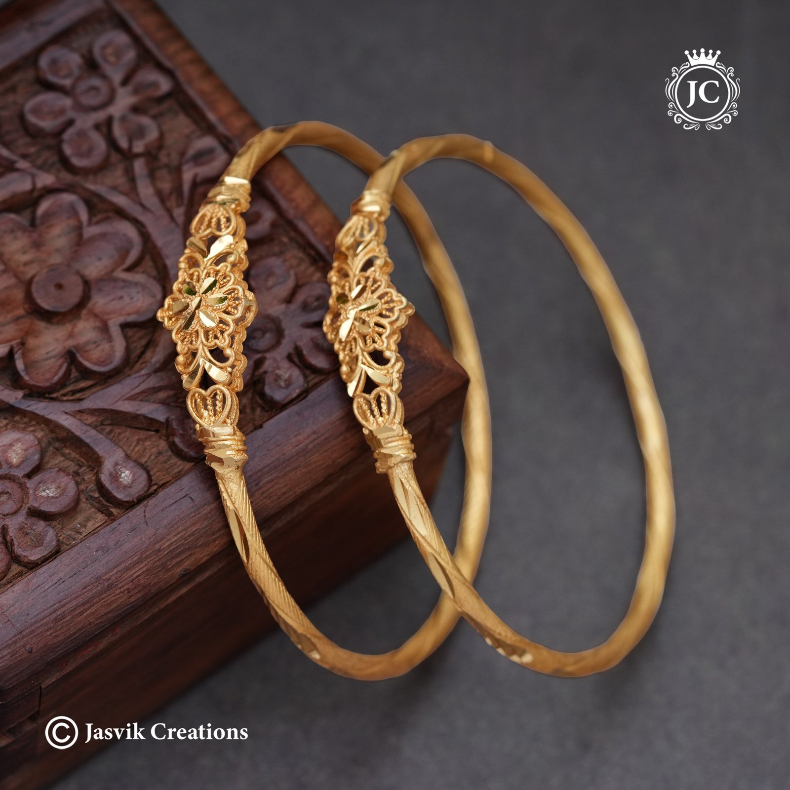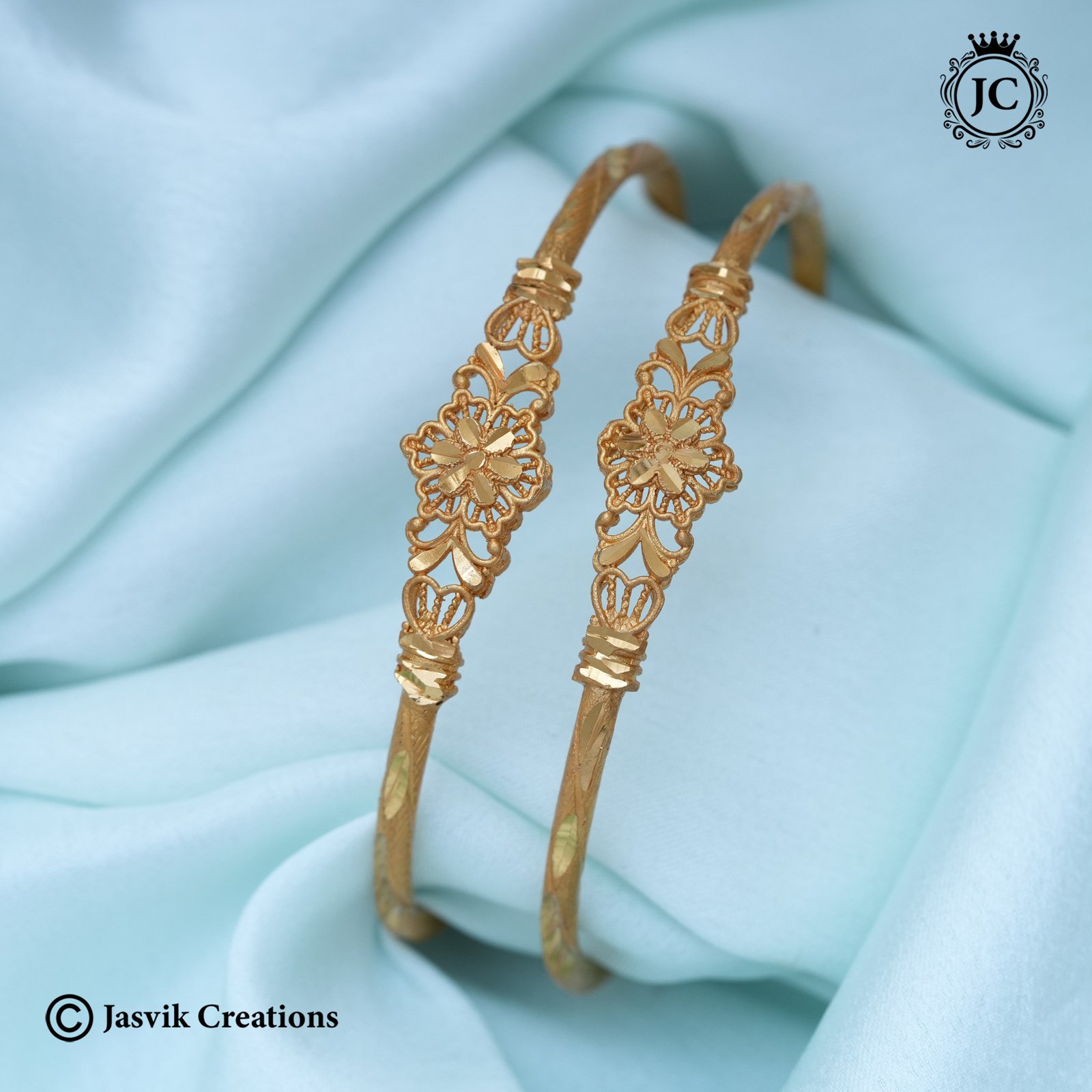 These are a pair of Traditional Micro Gold Plated Kada Type Bangles featuring a classic Indian design.