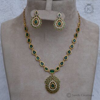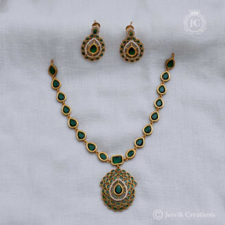 A Microplated Coral Necklace (often spelled Corel) combines the vibrant, traditional appeal of red coral with the durable brilliance of gold micro-plating. This set is a popular choice in South Indian fashion for its auspicious symbolism and high-end aesthetic.