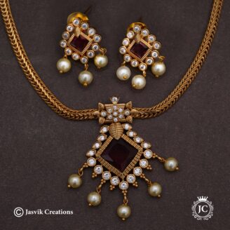 A Microplated Coral Necklace (often spelled Corel) combines the vibrant, traditional appeal of red coral with the durable brilliance of gold micro-plating. This set is a popular choice in South Indian fashion for its auspicious symbolism and high-end aesthetic.