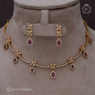 A Microplated Coral Necklace (often spelled Corel) combines the vibrant, traditional appeal of red coral with the durable brilliance of gold micro-plating. This set is a popular choice in South Indian fashion for its auspicious symbolism and high-end aesthetic.