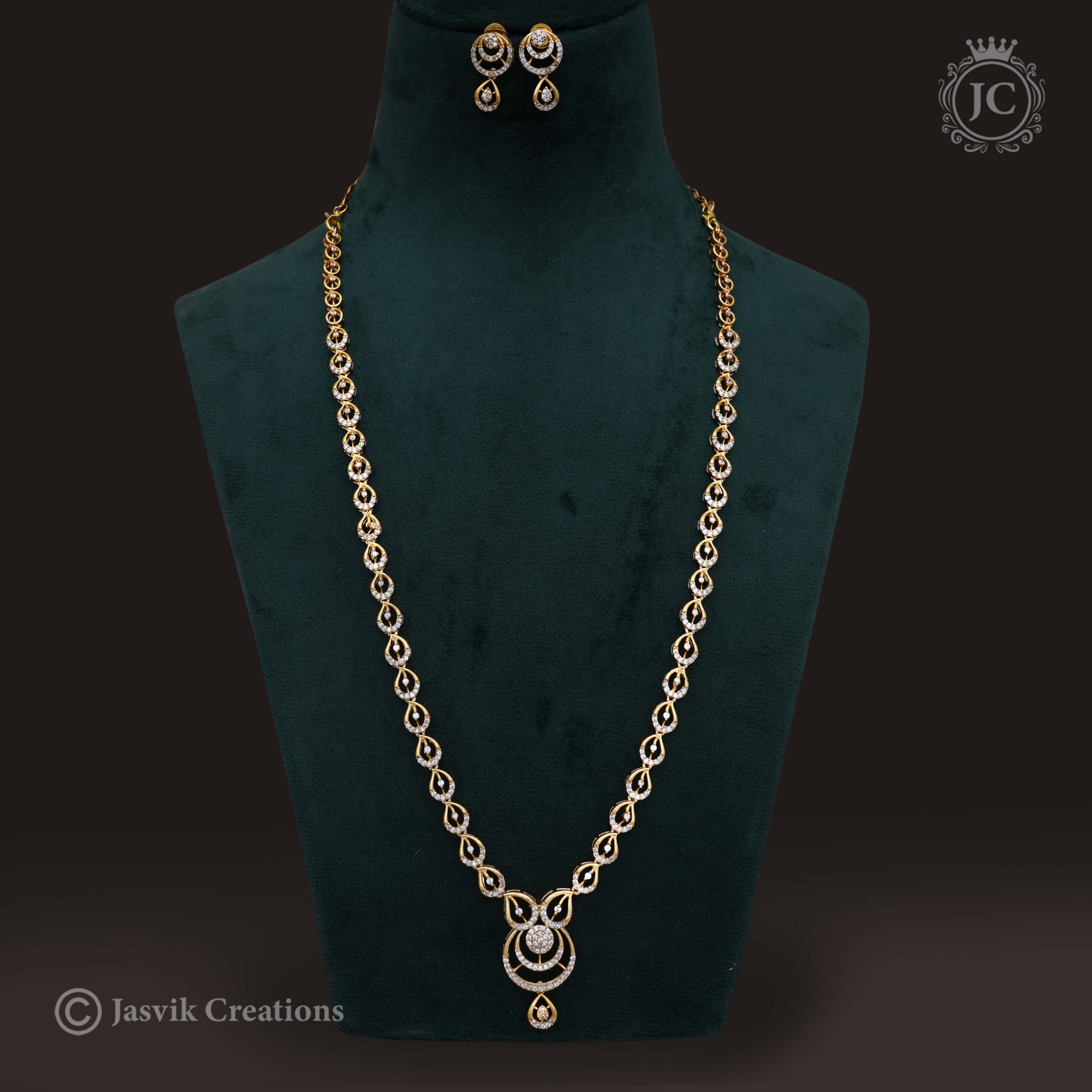 Dimensions: These harams are generally long, with lengths often around 28 to 30 inches. They typically come with an adjustable thread or chain to allow for a customized fit. A matching set of earrings, which may be jhumkas or studs, is usually included.