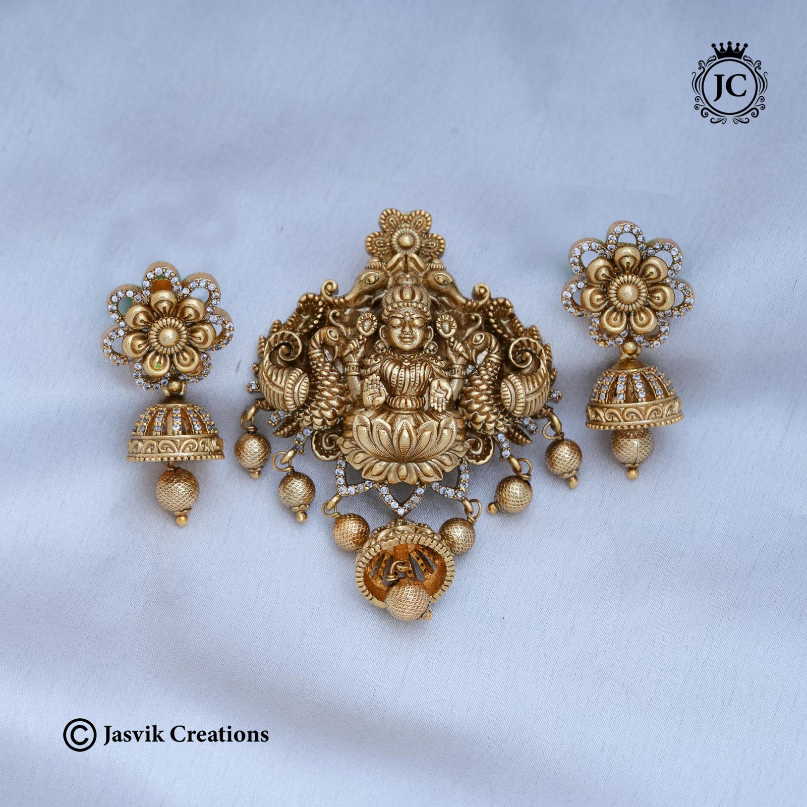 Premium Antique Lakshmi, Peacock Pendent with Ear Ring – JCPT106