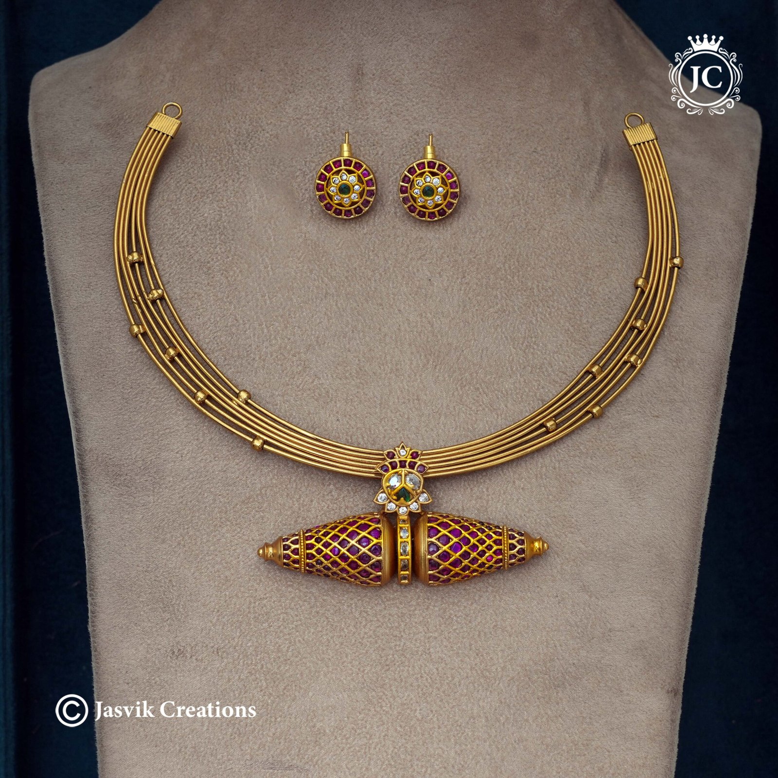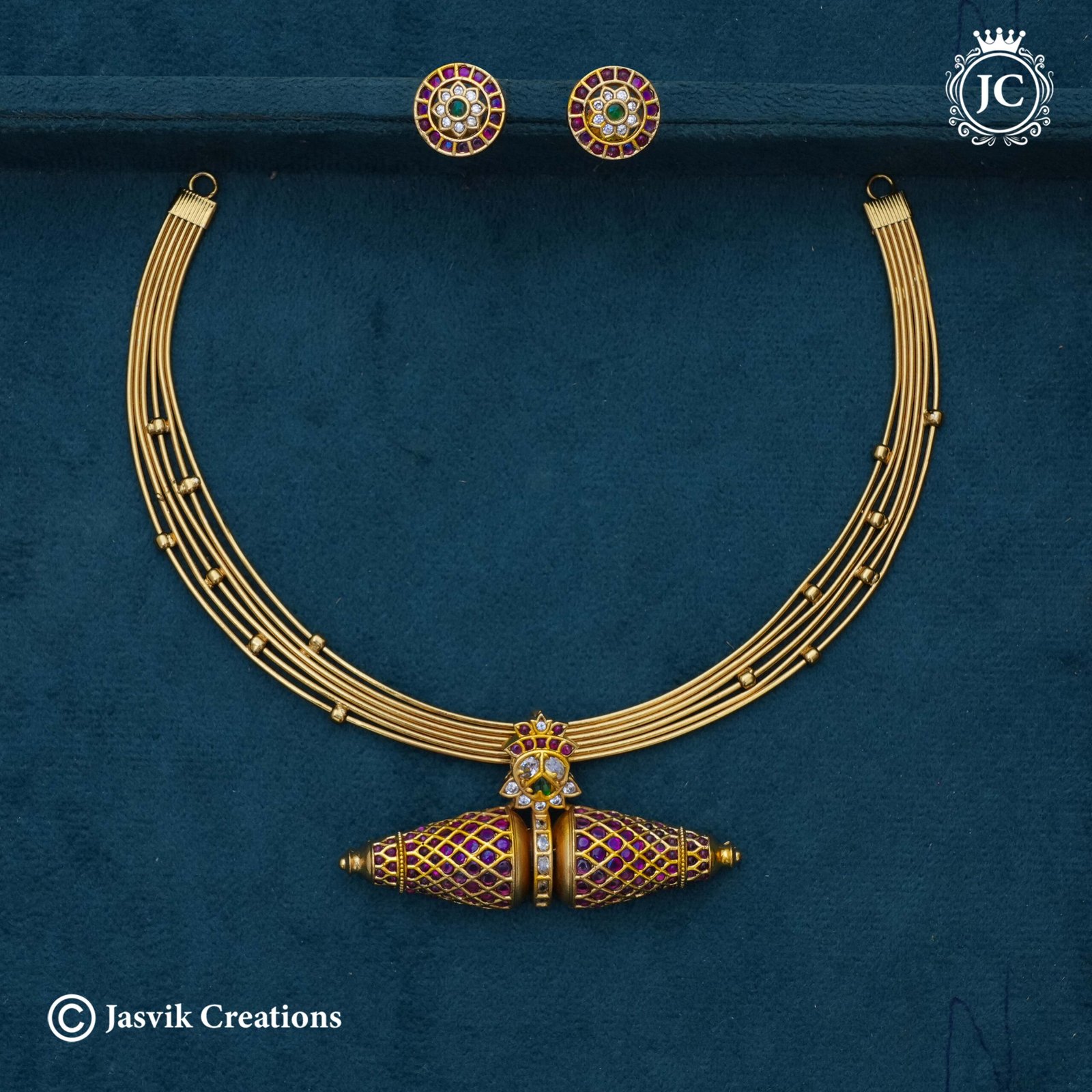 Style: Kandey Necklace Set (South Indian traditional choker with a specialized pendant).