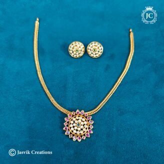 Dangler: The drop section consists of three vertically linked, graduated circular or semi-circular segments, all intricately paved with sparkling white stones (likely American diamonds/CZ).