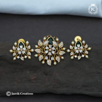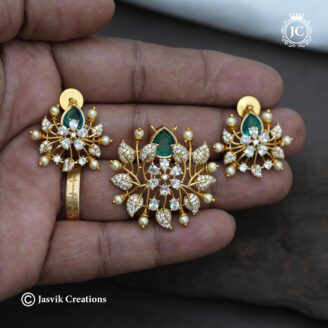Swarna Impon Lavender Set: A specifically designed Impon (five-metal alloy) set that highlights a lavender stone central piece, combining traditional metals with contemporary color trends.