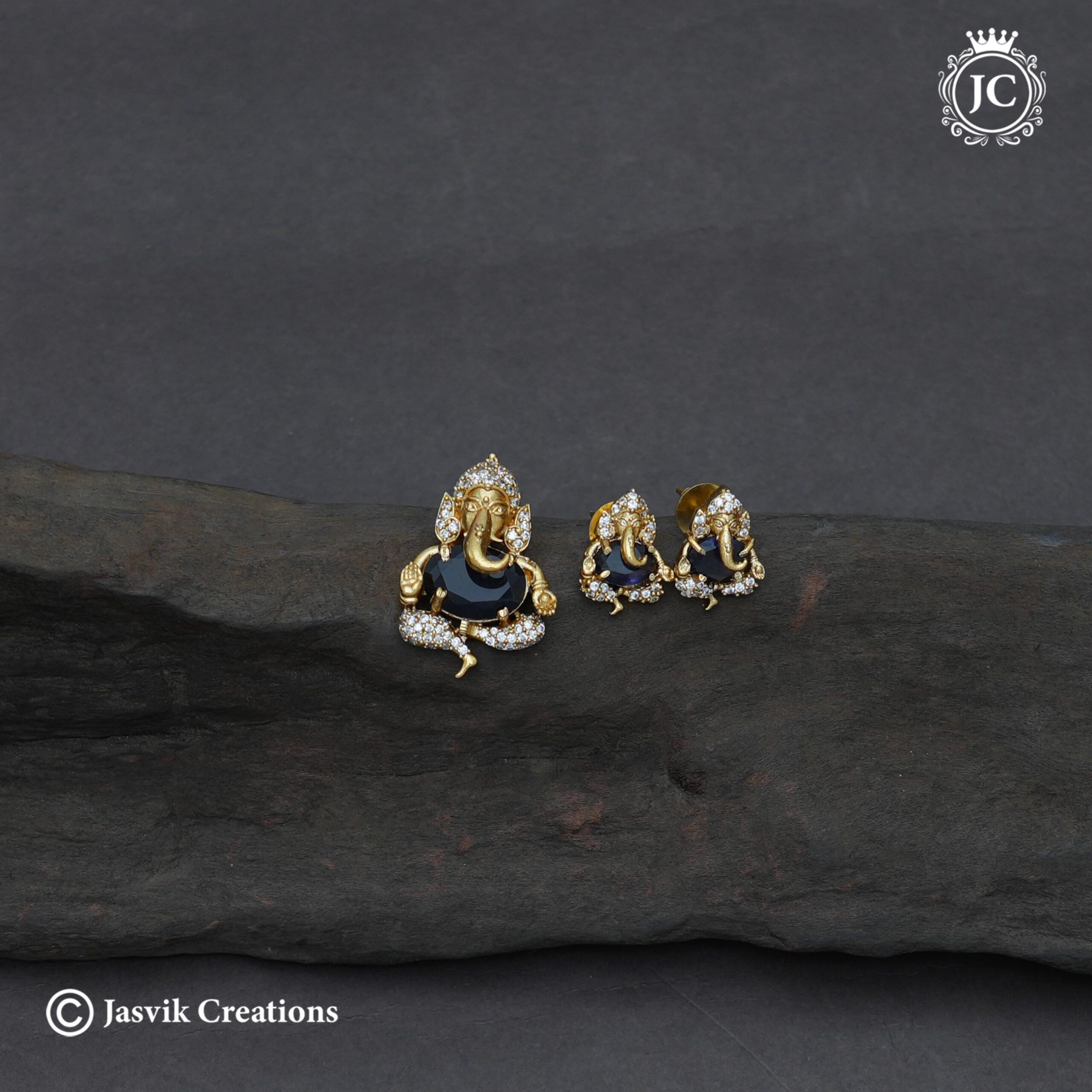 South India Jewels Ganesha Pendant Set: A premium, gold-look pendant featuring intricate Ganesha detailing, often paired with versatile stone colors including options for lavender or purple to create a distinctive aesthetic.