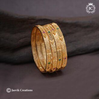 * **Maintenance:** To maintain its shine and longevity, it is recommended to keep the bangle away from chemicals, perfumes, and soap water. Store it in a plastic box or cover when not in use.