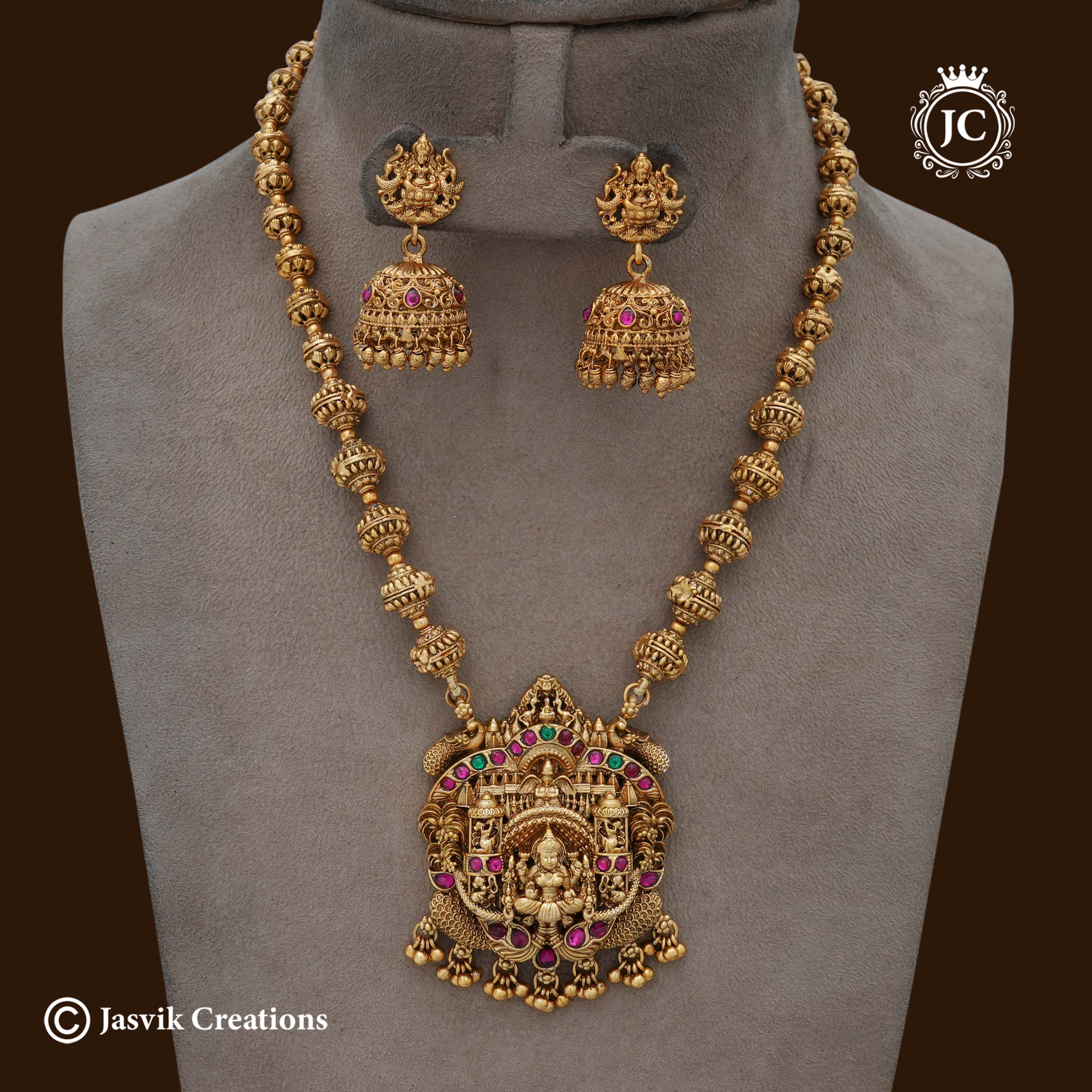 Chain Style: Composed of detailed, textured gold-tone beads (such as Gundla or ball-chain patterns) that add to the piece’s regal weight.
