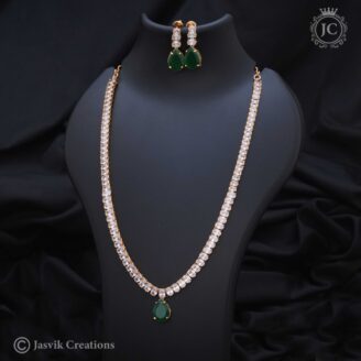 Style: As a “haram,” this is a long necklace, making it a perfect accessory for formal events and celebrations. Its simple design allows it to be paired with a wide range of outfits, from traditional sarees and anarkalis to more contemporary ethnic wear. It is ideal for those who prefer a less ornate and more understated look. The set often includes matching earrings that echo the design of the main necklace.