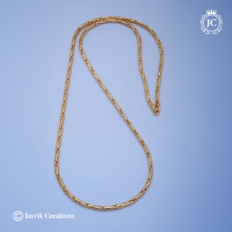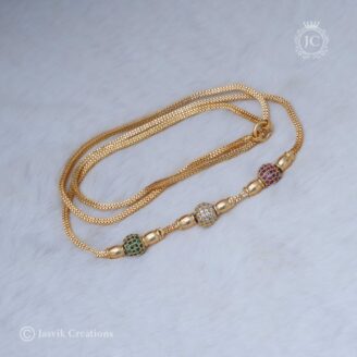 This is a thin, delicate short chain with a micro-plated finish. It is a versatile and elegant piece suitable for everyday wear or for complementing a pendant. Design: The chain features a “Murukku” link design, which is a popular style in South Indian jewelry. This link pattern resembles the twisted shape of the Murukku snack,…